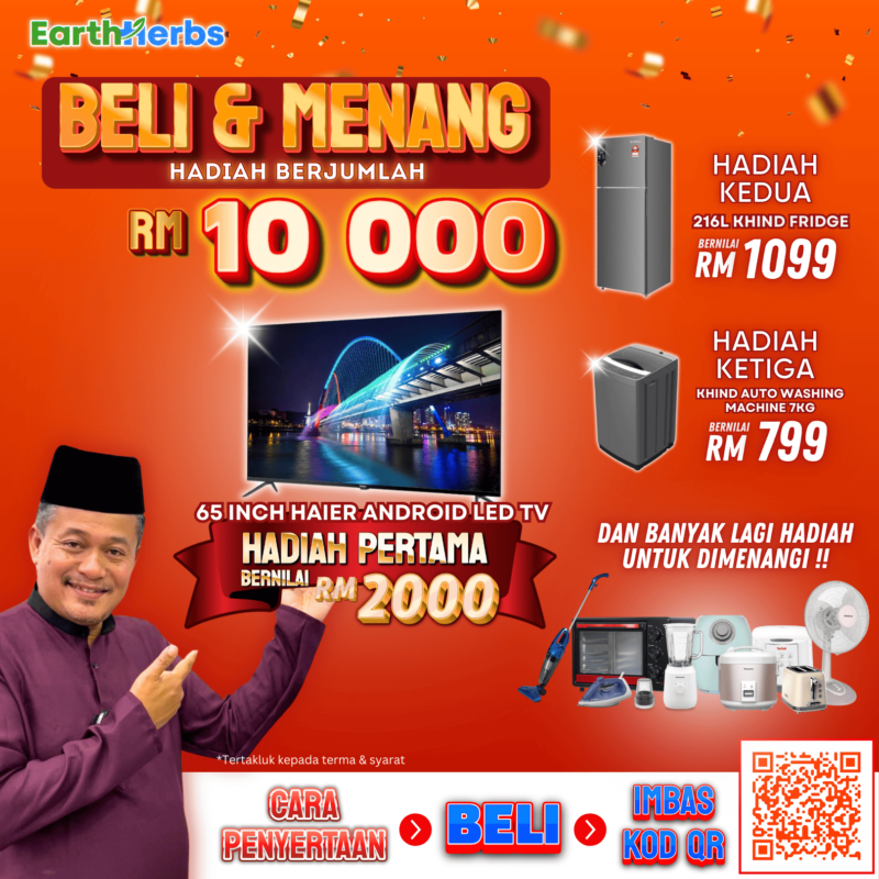 Sertai Peraduan EarthHerbs Beli & Menang! Cara penyertaannya mudah sahaja, beli sekurang-kurangnya 1 pek SureRelief, anda automatik berpeluang memenangi hadiah-hadiah menarik bernilai lebih RM10,000! Lagi banyak anda beli, lagi besar peluang anda menang!