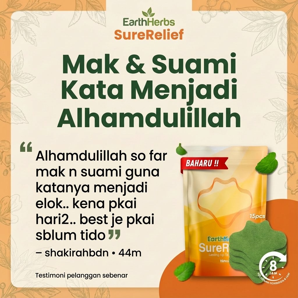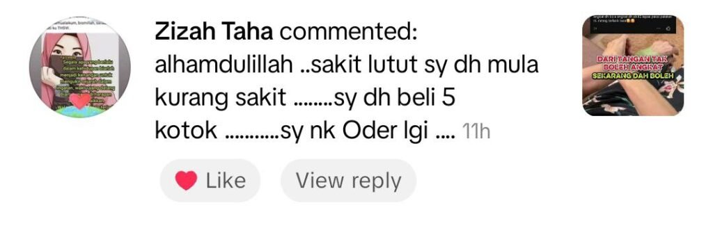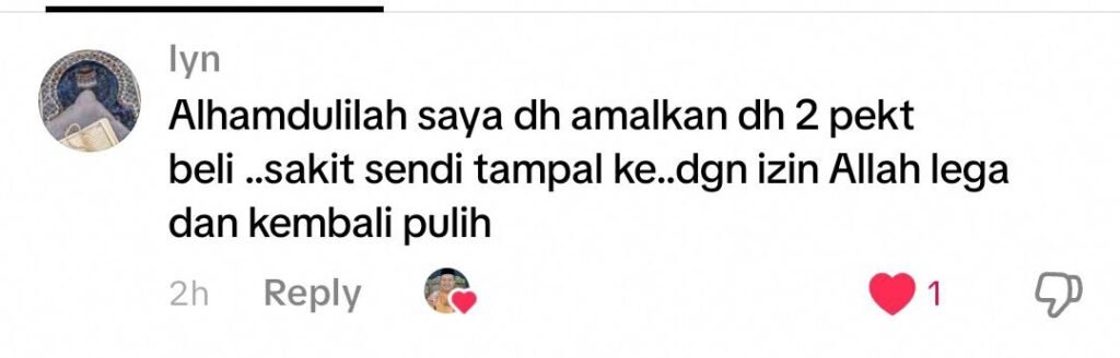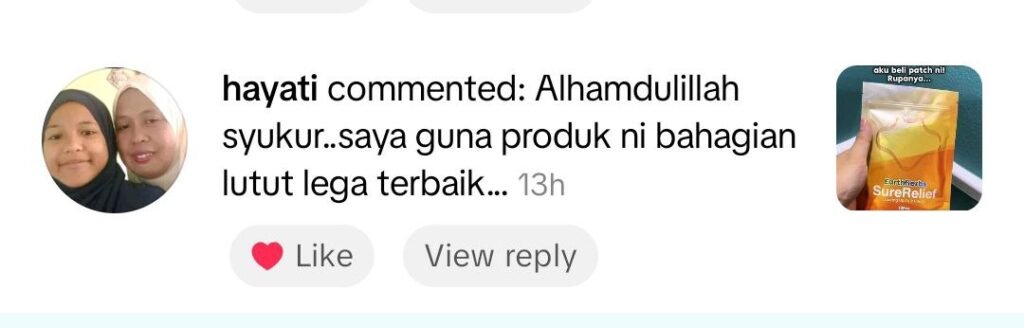 “Alhamdulillah sakit lutut dah kurang selepas amalkan SureRelief ni 2 malam..”